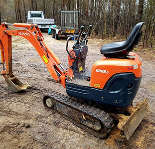 Posiadamy również minikoparkę KUBOTA K008-3. Jest to najmniejsza koparka na Polskim rynku renomowanej firmy KUBOTA. Spełnia wszystkie wymagania stawiane nowoczesnej maszynie. To profesjonalna koparka do wykopów o głębokości maksymalnej do 1,7 metra. Świetnie sprawdza się w ciasnych lub trudnych terenach, przy wykopach pod fundamenty, drenaż opaskowy, szamba, wszelkiego rodzaju instalacje (prąd, woda, gaz, kanalizacje), małe oczka wodne itp.